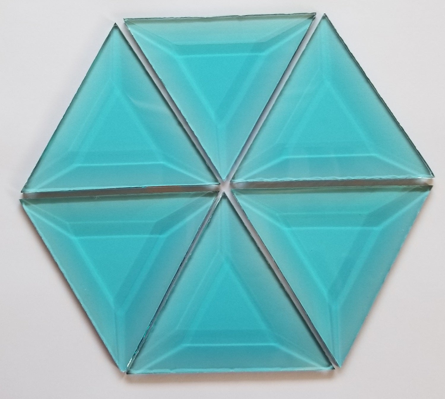 Pack of 6 - 3 Inch Turquoise Beveled Glass Triangle Bevels
