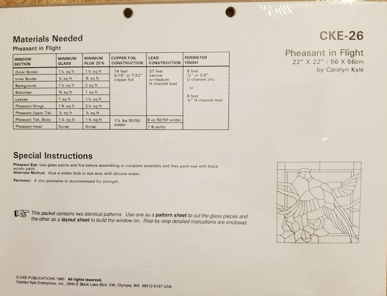 CKE 26 - Pheasant in Flight - Full size pattern 22 x 22 Inch