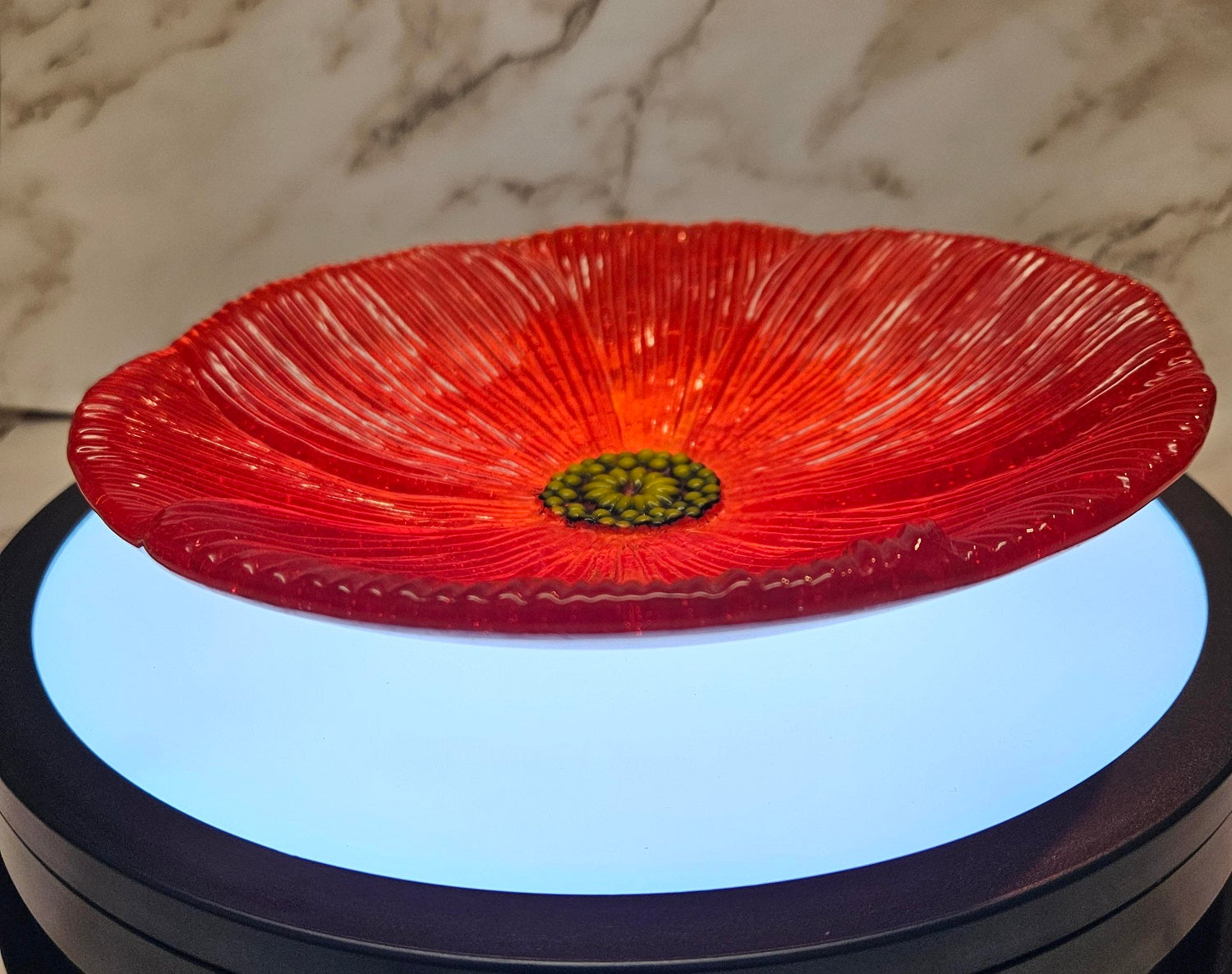 This heavy bowl has been annealed like all of my other fused glass pieces, however handwashing would be best.